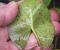 Blätter: oval, grün/braun marmoriert, Einschnitt gespreizt, 8-9 cm Ø