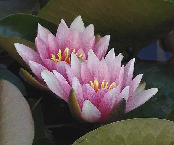 Blüte: rötlich an den Spitzen fast weiß, breite Tassenform, 24 lanzen-förmige Blütenblätter, 12-14 cm Ø